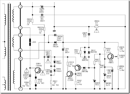 - Menjumpai kerusakan tegangan B+ over, maka biasanya yang perlu diperiksa terlebih dahulu adalah elko-elko (…….kalau ada) pada bagian primer dengan ESR meter. Contoh lain misalnya Panasonic model lama diketemukan zener protektor 56v rusak. Maka yang perlu dicurigai penyebabnya adalah tegangan switching regulator yang over. Dan ini umumnya juga disebabkan karena elko-2 pada bagian primer tahanan ESRnya naik.